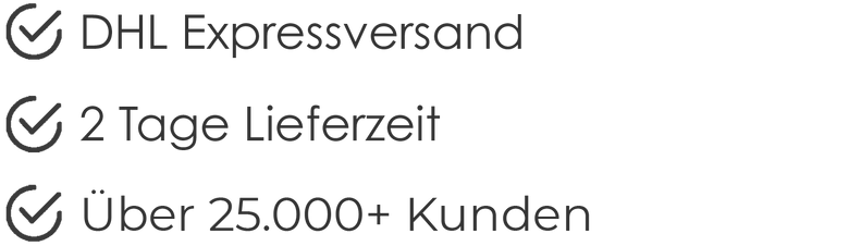 Wir verschicken tägliche alle Bestellungen aus unserem Lager in Deutschland. Dein Paket wird mit DHL verschickt und ist schon nach 2 Tagen bei dir.