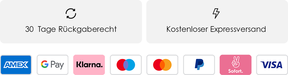 Wir bieten eine 30 tägige Zufriedenheitsgarantie. Wenn dir dein Artikel nicht gefällt kannst du ihn grundlos zurückschicken und dein Geld zurück bekommen.